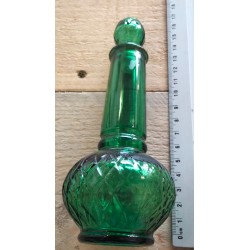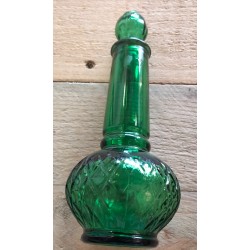Groen parfumflesje (leeg) van het merk Avon. Flesje is ongeveer 17 cm hoog.