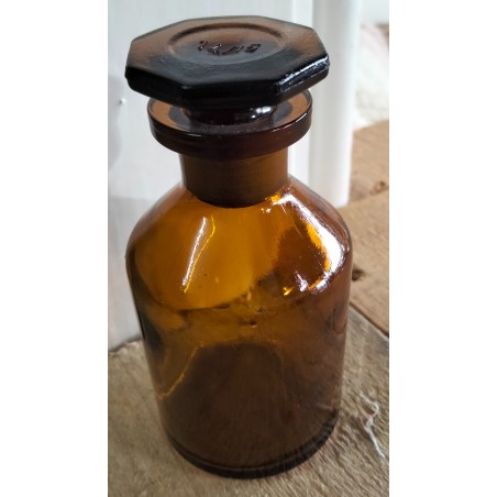 Klein apothekersflesje van ongeveer 9 cm hoog.