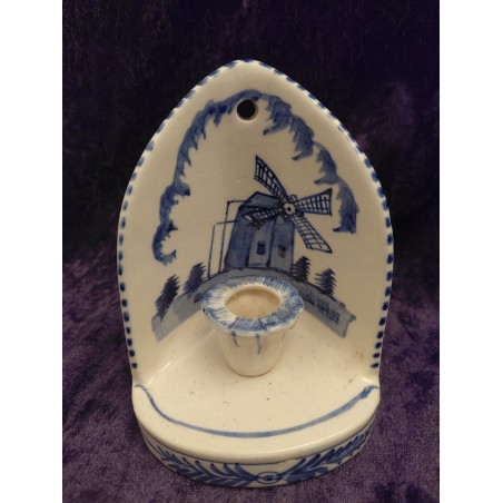 Delfts Blauwe wandkandelaar. Hand beschilderd met een afbeelding van een molen.