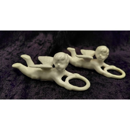 Set van 2 vintage porseleinen engeltjes, ook wel kaarsknuffels (candle huggers) genoemd, die zijn ontworpen om aan een kaars te bevestigen.