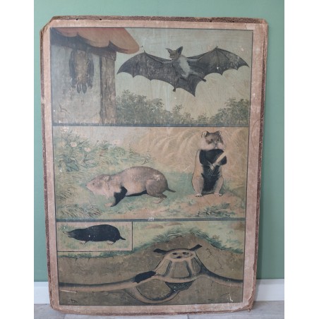 Antieke schoolplaat, vermoedelijk uit Finland, verdeeld in drie secties.
